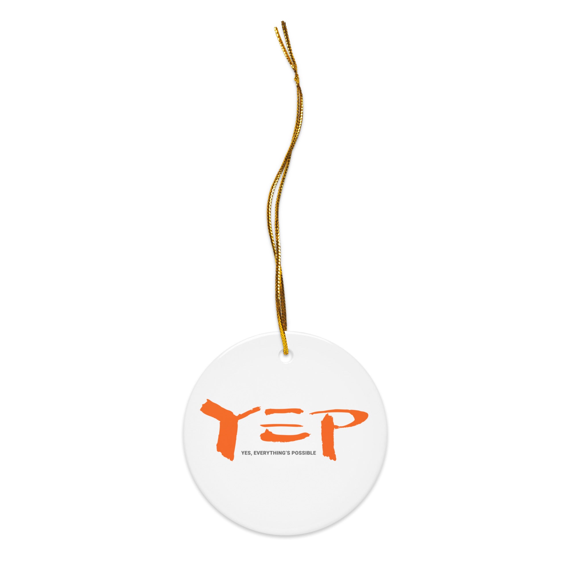 Bring charm to your home with a glossy YEP ornament! With a smooth finish and elegant gold-toned string, it stands out in any festive setting.